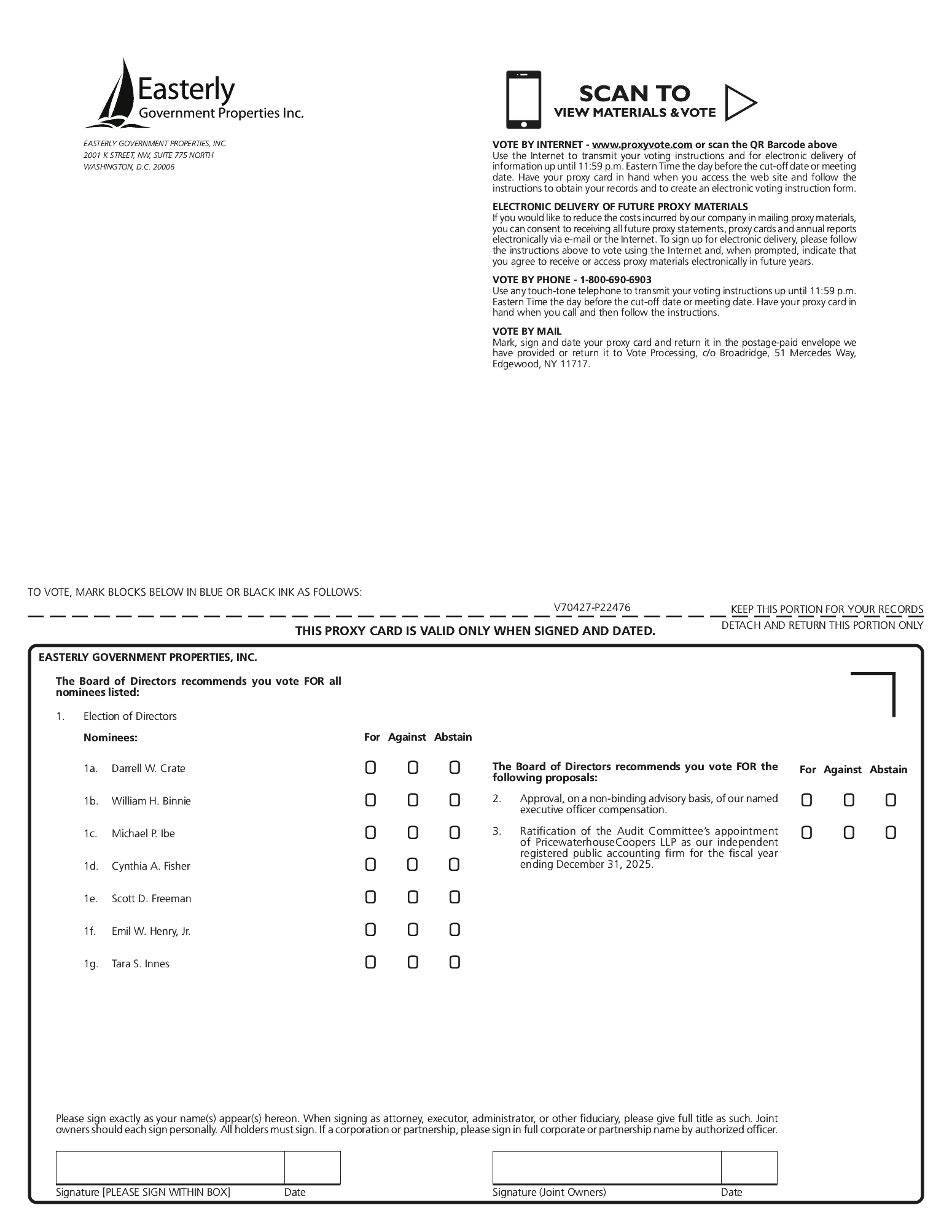 If you authorize your proxy to vote your shares electronically via the Internet or by telephone, or, if you properly marked, signed, dated and returned the proxy card mailed to you, the shares that the proxy represents will be voted in the manner specified on the proxy. If you properly signed and returned a proxy card but no specification is made, your shares will be voted “for” the election of the director nominees named in this proxy statement, “for” the approval, on a non-binding advisory basis, of the compensation of our named executive officers, as described in this proxy statement, and “for” the ratification of the appointment of PricewaterhouseCoopers LLP as our independent registered public accounting firm for the fiscal year ending December 31, 2025. If your shares are held in street name and your broker or nominee does not receive instructions from you about how